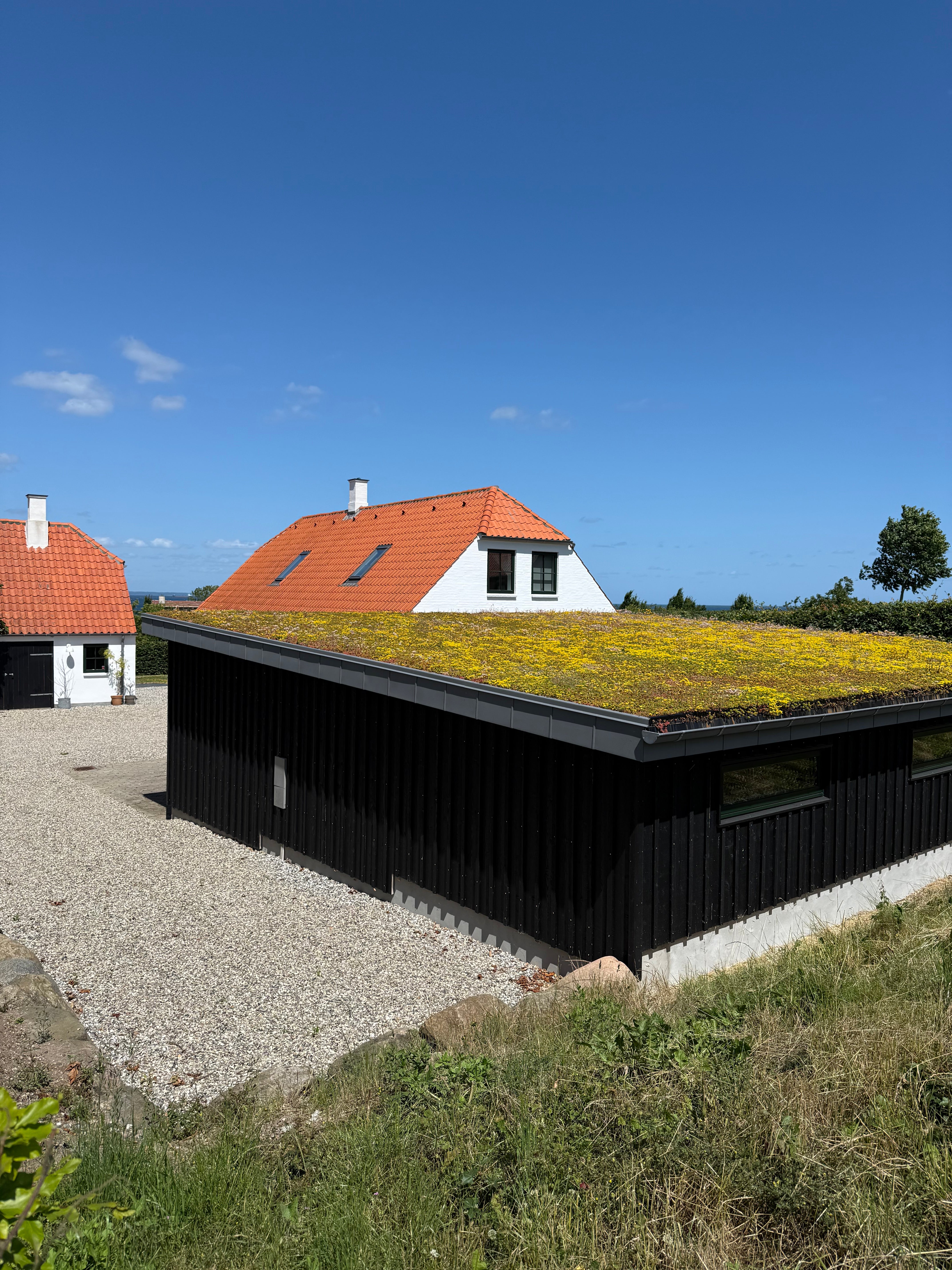 En visionær kunde har netop færdiggjort installationen af 600 m² sedumtag fordelt på bolig og flere sammenhængende bygninger. Resultatet er et markant og harmonisk udtryk, hvor det grønne tag skaber en naturlig kontrast til den sorte træbeklædning og fremhæver husets arkitektur. Løsningen er ikke bare æstetisk – den bidrager også til øget isolering, bedre regnvandshåndtering og biodiversitet i nærområdet. Et stærkt eksempel på, hvordan grønne tage kan integreres smukt og funktionelt i moderne byggeri. Se billeder fra projektet nedenfor.