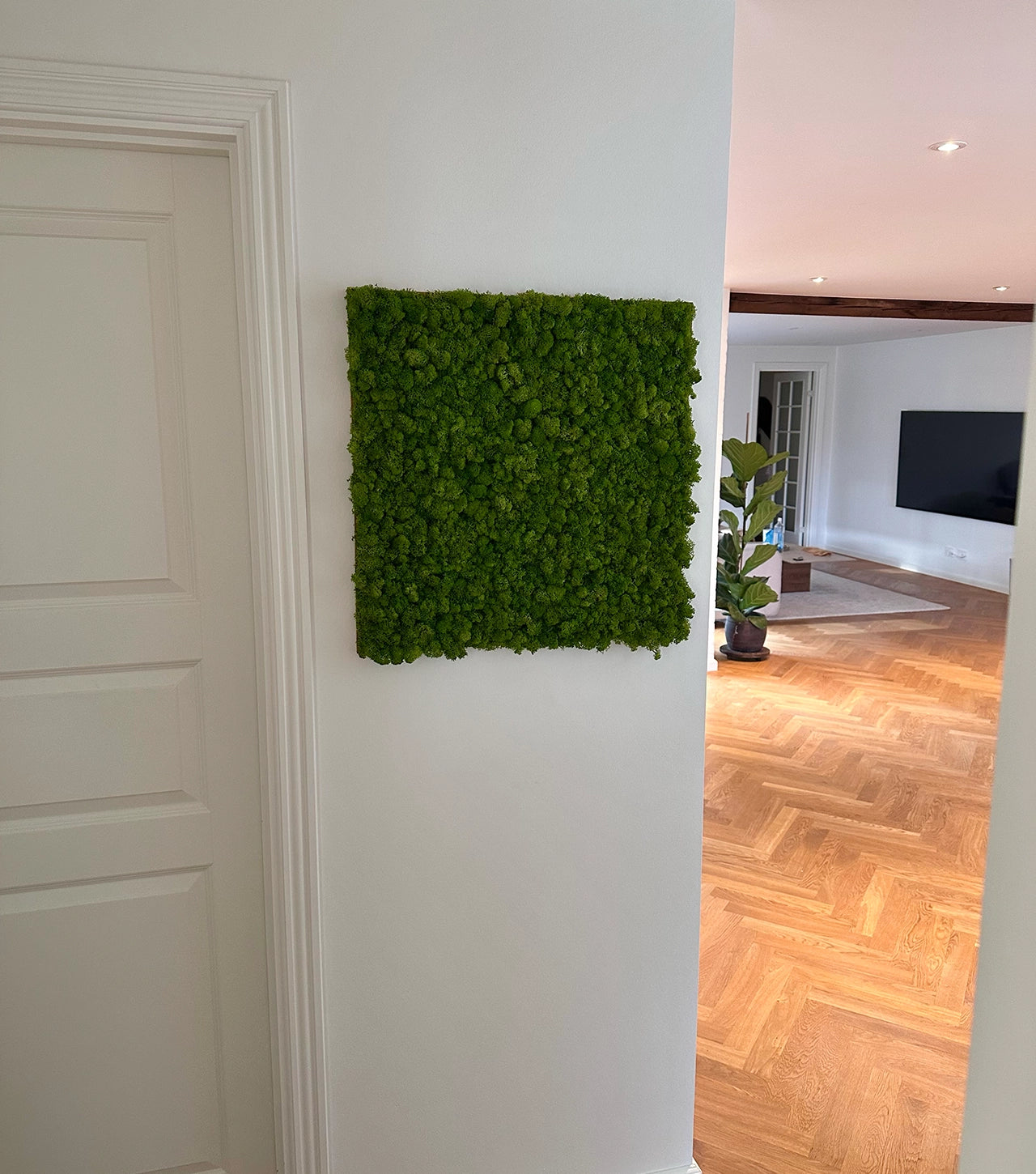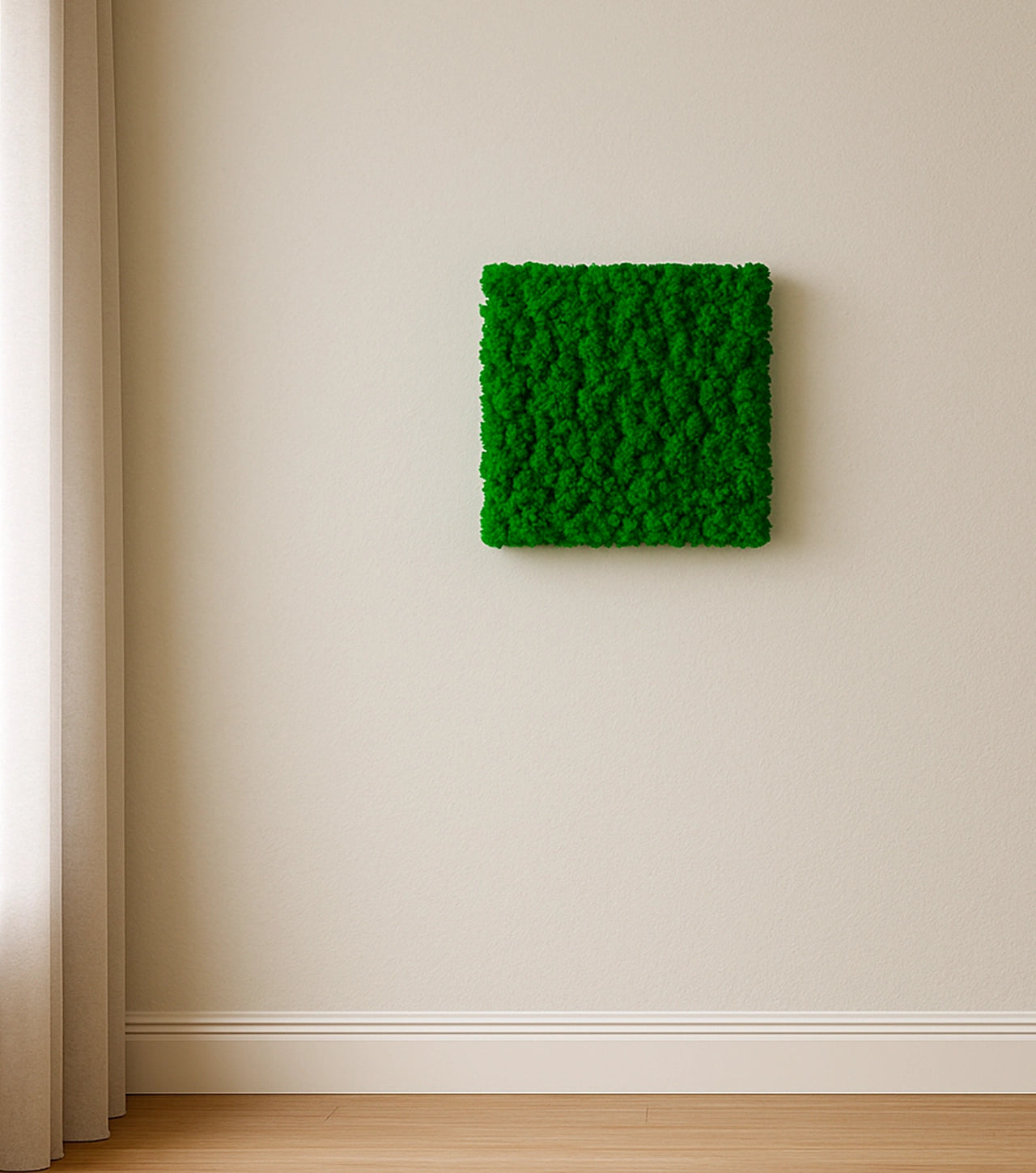 Vores mospaneler bringer naturens ro og æstetik direkte ind i dit hjem eller kontor. Hvert panel er fremstillet af 100% ægte rensdyrmos, omhyggeligt udvalgt for at sikre en blød, frodig og levende overflade. Den naturlige struktur tilføjer et organisk, sanseligt element til indretningen, mens de rolige grønne nuancer skaber en behagelig stemning.
